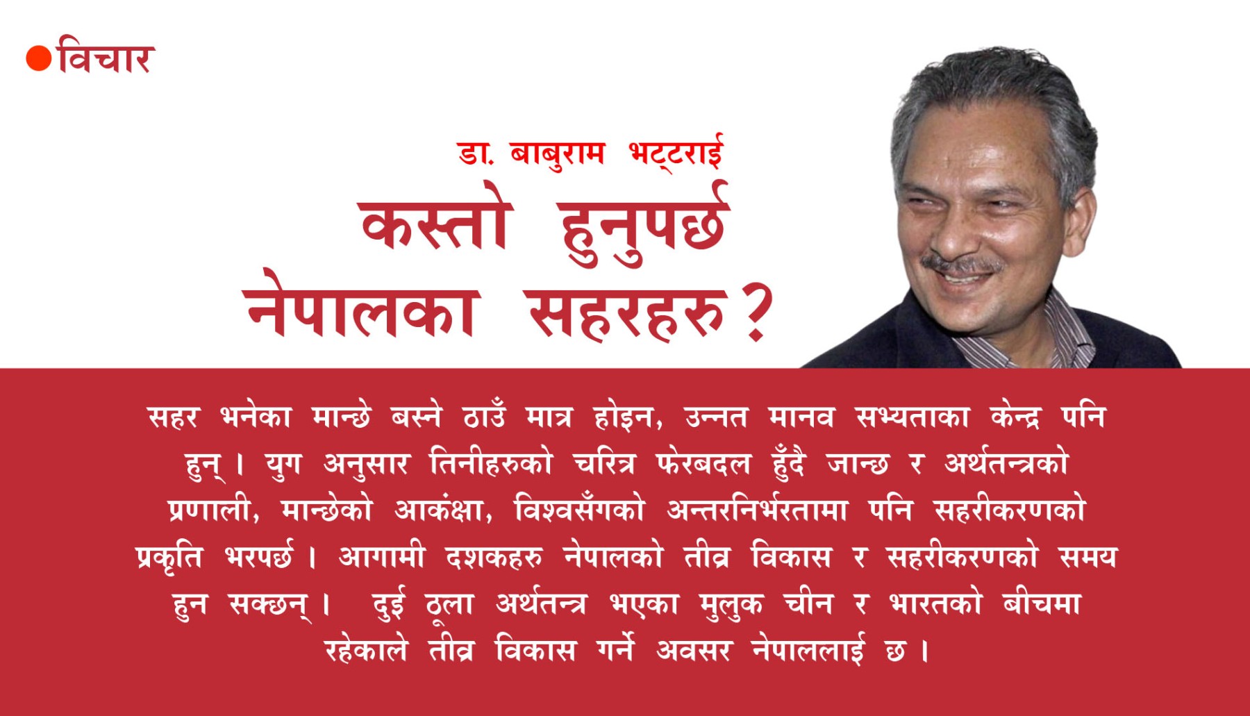 सहर भनेका मान्छे बस्ने ठाउँ मात्र होइन, उन्नत मानव सभ्यताका केन्द्र पनि हुन् । युग अनुसार तिनीहरूको चरित्र फेरबदल हुँदै जान्छ र अर्थतन्त्रको प्रणाली, मान्छेको आकंक्षा, विश्वसँगको अन्तरनिर्भरतामा पनि सहरीकरणको प्रकृति भरपर्छ । आगामी दशकहरू नेपालको तीव्र विकास र सहरीकरणको समय हुन सक्छन् । दुई ठूला अर्थतन्त्र भएका मुलुक चीन र भारतको बीचमा रहेकाले तीव्र विकास गर्ने अवसर नेपाललाई छ । चीन र भारतबीचको गतिशील साँघु बन्न सक्यौं भने बस्ती प्रणालीको विकास पनि त्यसै अनुसार हुन सक्छ । साथै नेपालको ठूलो भूभाग हिमाली र पहाडी क्षेत्र हुनाले पर्यावरणीय संरक्षणको मुद्दालाई गम्भीरताका साथ ख्याल गर्नुपर्छ । सहरीकरण वा विकासको कुरा गरिरहँदा नेपालको संवेदनशील भूबनोट र जैविक विविधतालाई बिर्सन हुँदैन । वातावरण संरक्षणलाई ध्यान दिँदै दिगो बस्ती प्रणालीको विकास गर्न सक्यौं भने नेपाल हरित बस्ती प्रणालीको विश्वमै उदाहरण बन्न सक्छ । त्यसनिम्ति यी सबै काम संघ, प्रदेश र स्थानीय तहले समन्वयमा गर्न सक्छन् र गर्नुपर्दछ ।