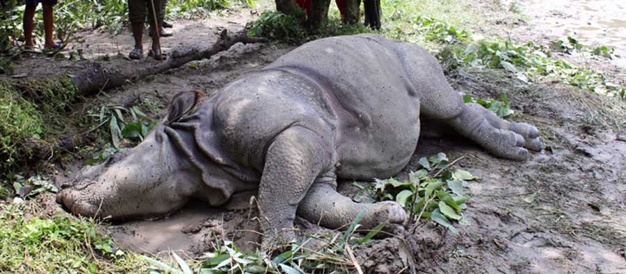 सडेको अवस्थामा मृत गैँडा भेटियो